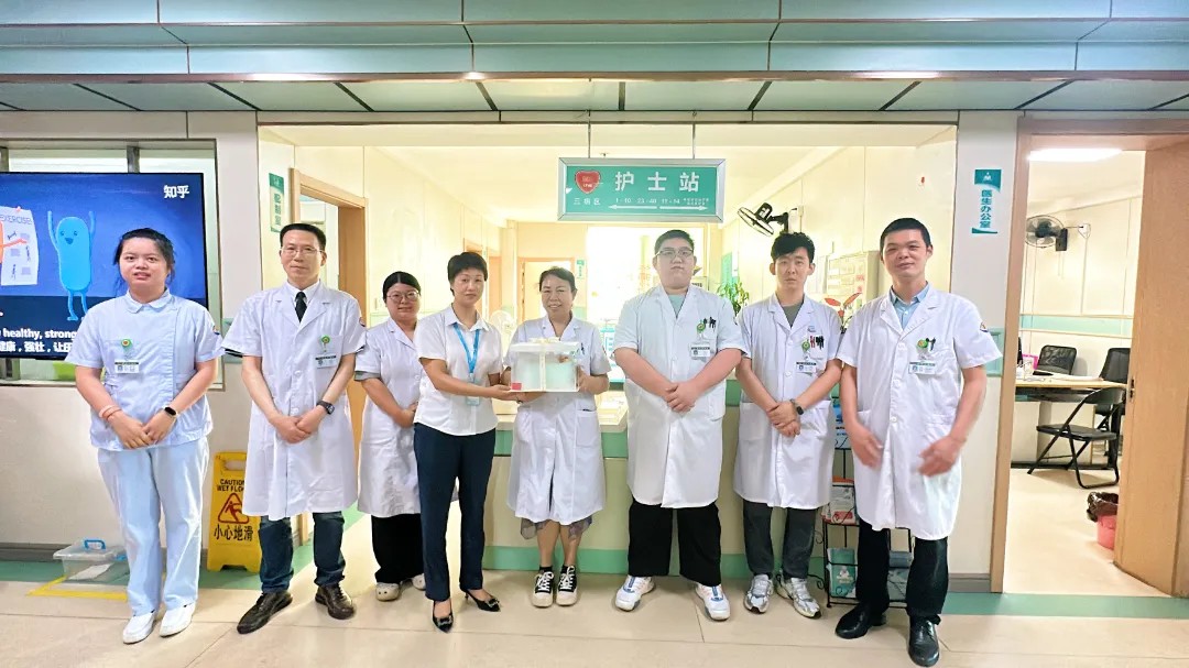 8月19日(周一)下午,顧霄鵬院長(zhǎng)帶領(lǐng)院部領(lǐng)導(dǎo),對(duì)一線臨床醫(yī)生進(jìn)行節(jié)日慰問(wèn),并送上屬于他們的節(jié)日蛋糕。