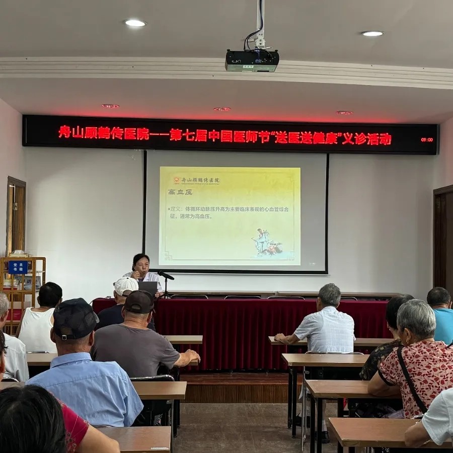 8月15日(周四)上午,由舟山顧鶴傳醫(yī)院黨支部書(shū)記陳燕帶隊(duì)至臨城桃灣社區(qū)開(kāi)展義診活動(dòng)。內(nèi)科/康復(fù)科主任、主任醫(yī)師張秀梅帶來(lái)健康課堂——《高血壓與糖尿病》。