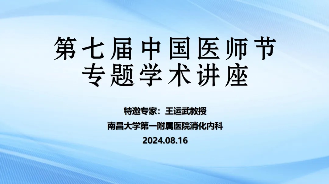 8月16日(周五)下午,特邀南昌大學(xué)第一附屬醫(yī)院消化內(nèi)科——王運(yùn)武博士,至我院開(kāi)展“第七屆中國(guó)醫(yī)師節(jié)·專題學(xué)術(shù)講座”。授課題目:《胃癌的致癌原——幽門螺桿菌》。