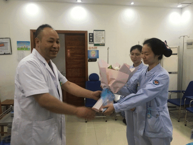 執(zhí)行院長??瞪o護(hù)士們贈(zèng)送鮮花