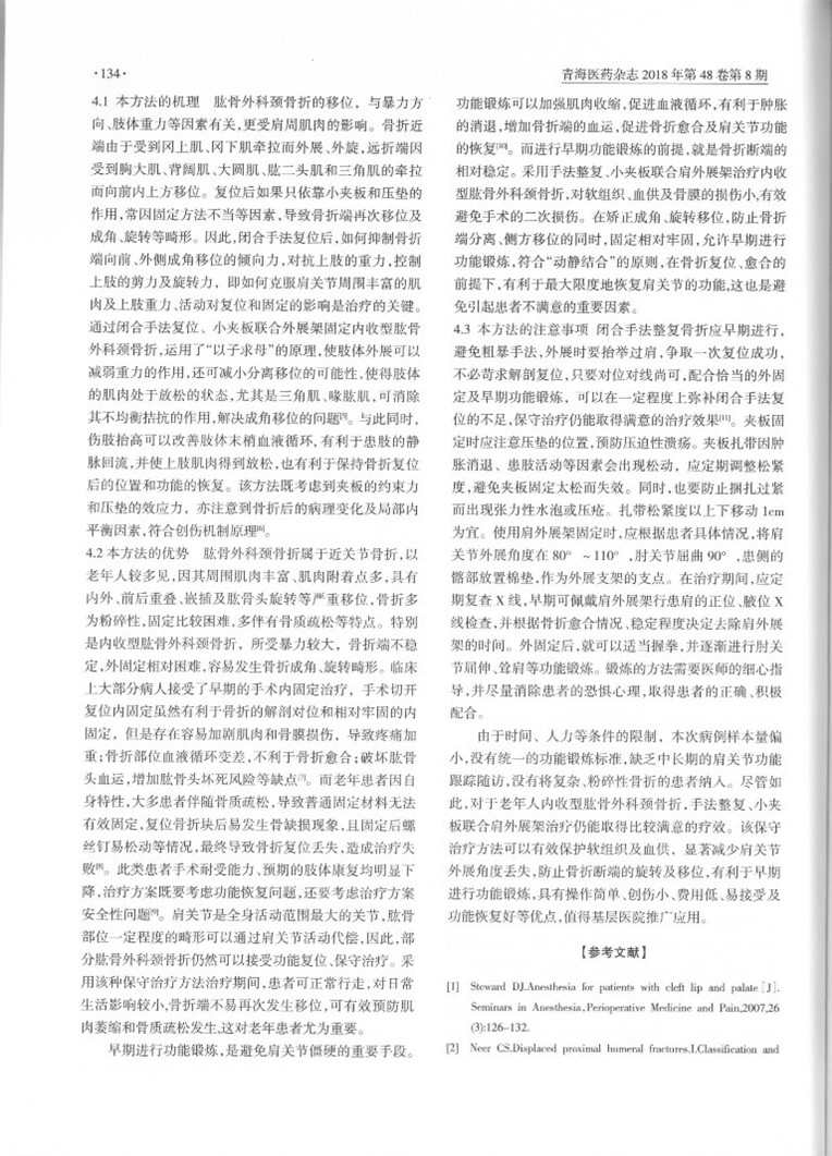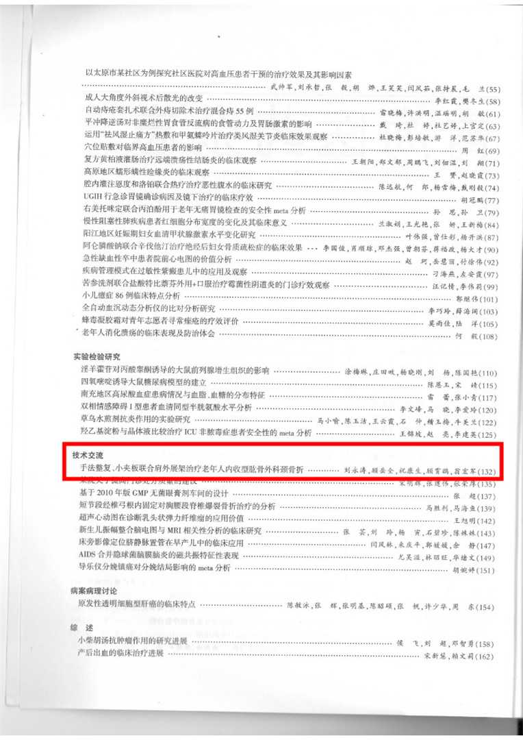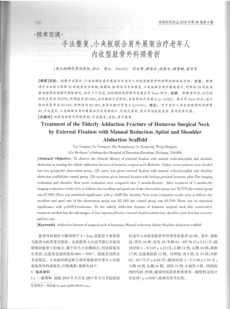由我院掌門(mén)人顧岳全、顧霄鵬、劉永濤、??瞪⑽毯贶姷茸珜?xiě)的論文《手法修復(fù)、小夾板聯(lián)合肩外展架治療老年人內(nèi)收型肱骨外科脛骨折》在國(guó)家核心期刊《青海醫(yī)藥雜志》2018年第48卷第8期上發(fā)表。