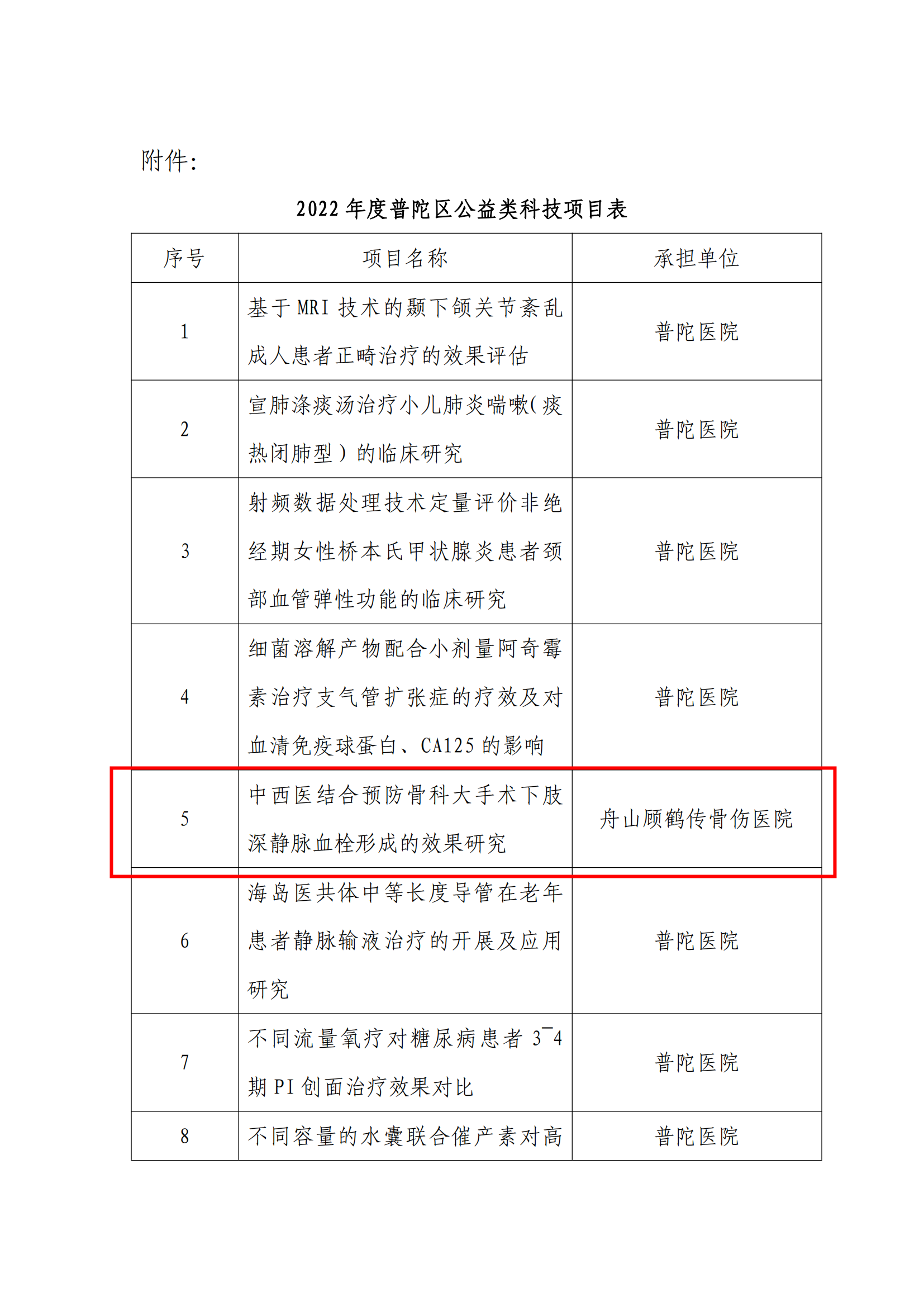 【新技術(shù)新項(xiàng)目】我院《中西醫(yī)結(jié)合預(yù)防骨科大手術(shù)下肢深靜脈血栓形成的效果研究》被納入2022年度普陀區(qū)科技局公益類科技項(xiàng)目