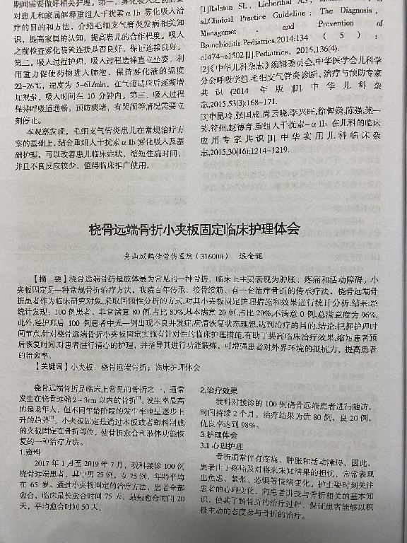 我院溫金妮護(hù)士長撰寫的論文《橈骨遠(yuǎn)端骨折小夾板固定臨床護(hù)理體會(huì)》在《舟山醫(yī)學(xué)》2019年47卷第4期上發(fā)表。